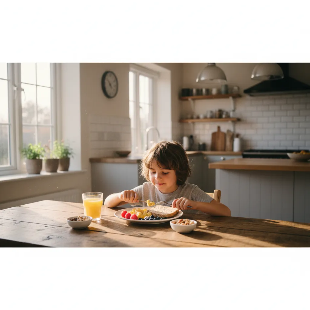 Breakfast is the meal where you can make the biggest impact with the least effort. Swap sugary cereals for porridge with berries and seeds, scrambled eggs on wholemeal toast, or natural yoghurt with fruit and nuts. A protein-rich breakfast helps to stabilise blood sugar and improve morning concentration. Many parents I work with tell me this single change made a noticeable difference within the first week.